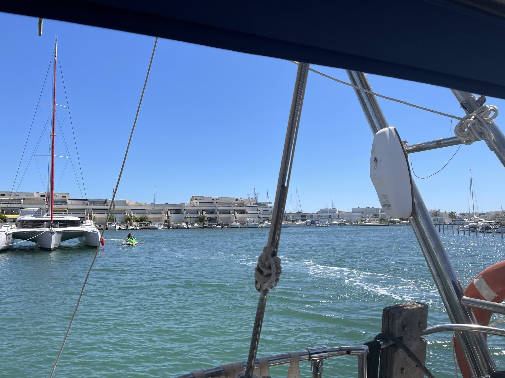Le départ Précédent Suivant Après divers problèmes techniques à régler ( les joies de la voile ) . Comme prévu nous partons vers l’Est . Enfin un peu de voile ! Arrivée à Port Camargue